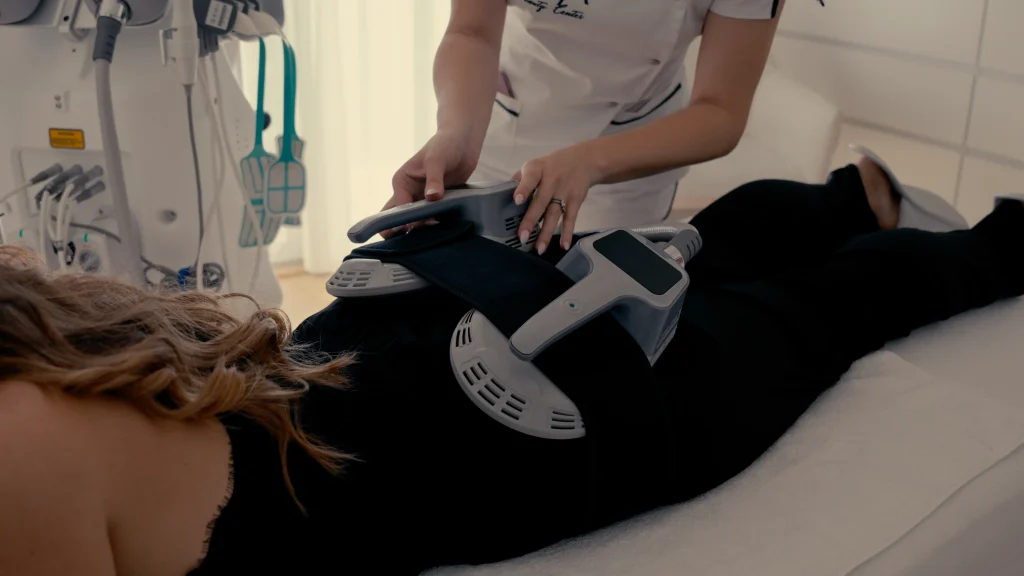 Sie nutzt die modernste hochintensive fokussierte elektromagnetische Technologie (HIFEM – High-Intensity Focused Electromagnetic), um gleichzeitig Muskelmasse aufzubauen und Fettzellen zu reduzieren, indem sie in einer einzigen Sitzung über 20.000 starke Muskelkontraktionen auslöst.